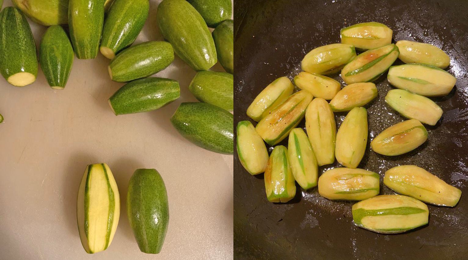 1. Peel pointed gourds completely – score each and so gravy can be absorbed
